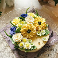 黄色いリアルフラワーのケーキ(チーズケーキ味)5号